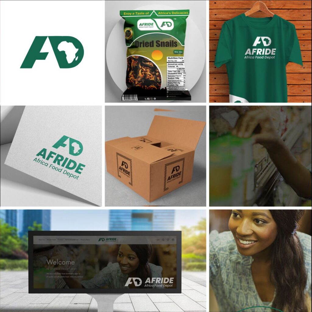 For AFRIDE, we crafted a dynamic brand identity that gives the warm African cuisine feel and the company’s mission of exporting high-quality food products to the USA. while trying to stay true to the oreginal brand colors we added some bright hues to the  color palette to evoke the warmth and energy of African markets. The logo features illustrations of iconic African map, while a well well crafted typography adds authenticity and modernity. Our messaging highlights AFRIDE’s commitment to quality, authenticity, and sustainability, telling the story of its journey  and creating an emotional connection with consumers.