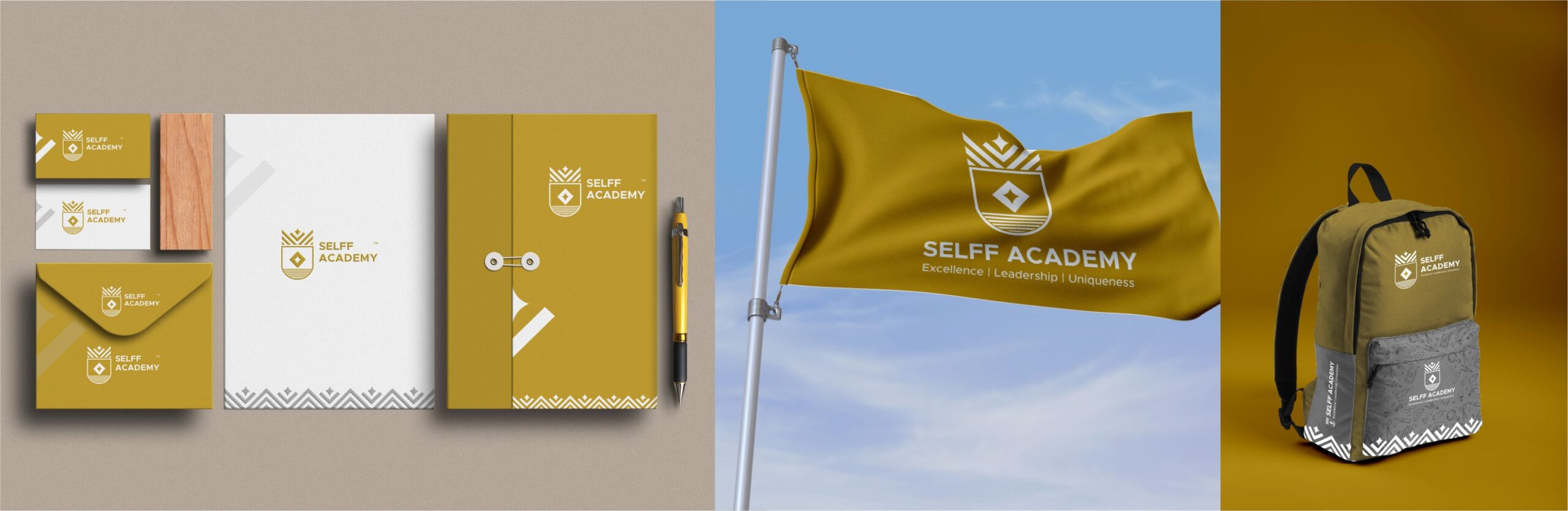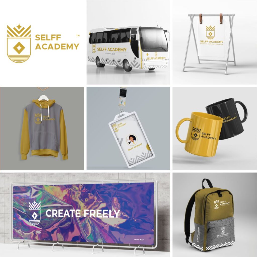 For the School of Excellence, Leadership, Fraternity, and Finesse (SELFF), the journey of life’s challenges (Waves) meets a unique learning formula (Books) to unveil individual stars (Sun) through self-discovery (Purpose). Our tailored brand identity encapsulates this essence, reflecting the organization and founder seamlessly. With a palette of mustard yellow, grey, and white, augmented by vibrant accent colors for children, SELFF radiates strength and readiness for the future. It stands as a beacon of excellence, leadership, and uniqueness, guiding individuals on their path to self-realization and success.